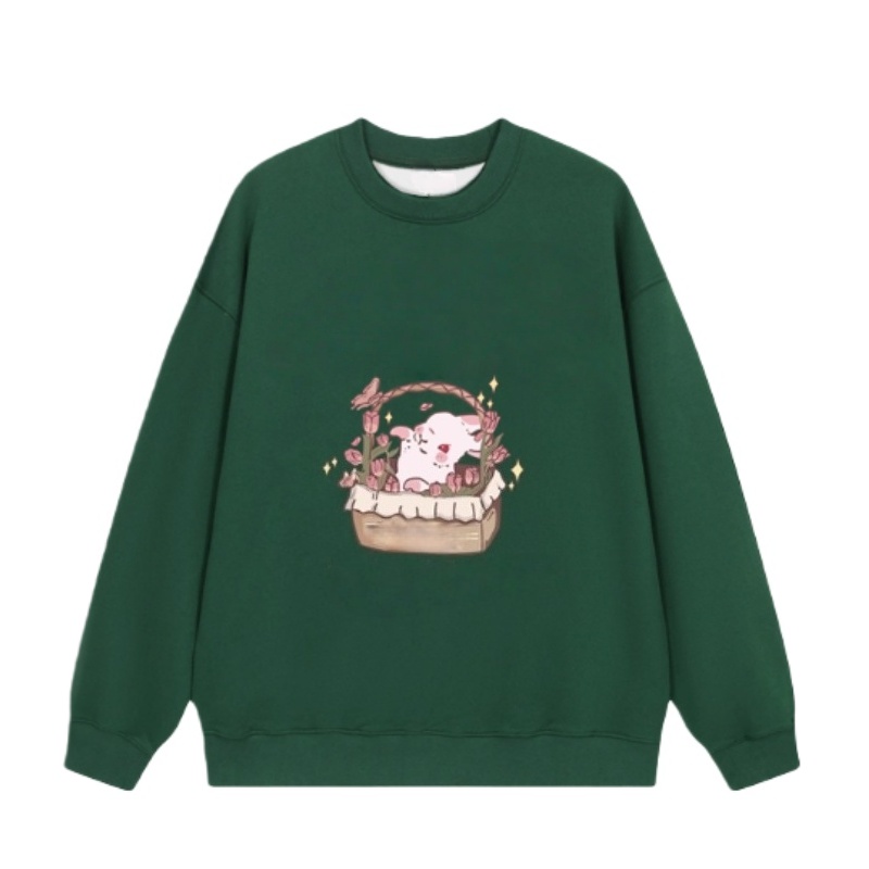 Retro Green Pure Cotton Casual Sweatshirt